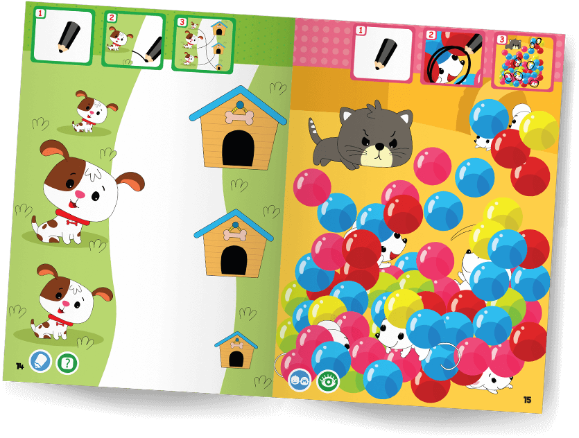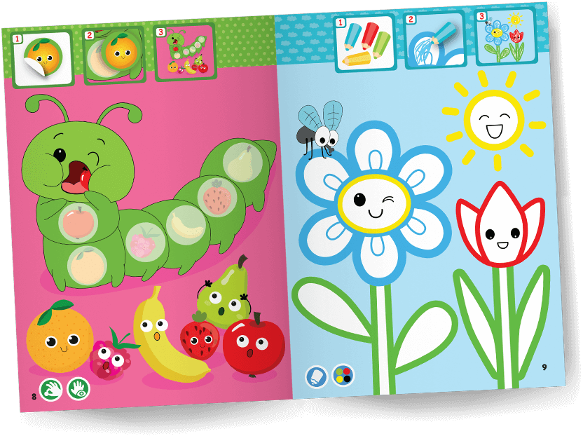 Ilustrované úkoly obsahují mnoho emocí a situací, které děti od 2 let snadno rozpoznají. To pomáhá rozvíjet jejich sociální a emocionální dovednosti.